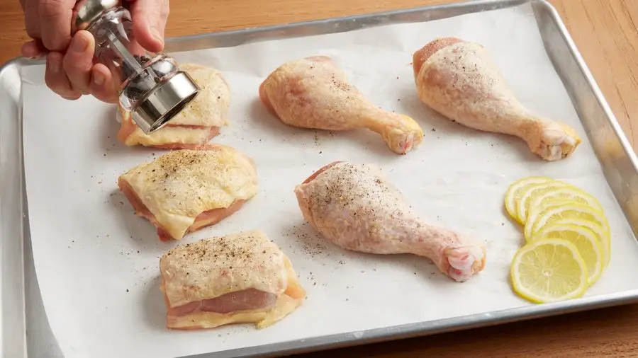 - Condimentar el pollo cortado en octavos y dorarlo en una sartén. Cuando haya tomado color, reservarlo.